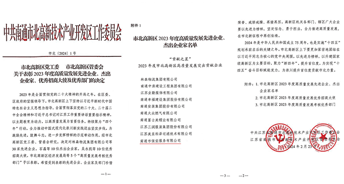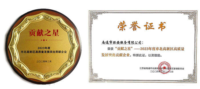 喜報——南通保安公司榮獲市北高新區(qū)“‘貢獻之星’——2023年度高質(zhì)量發(fā)展突出貢獻企業(yè)”稱號